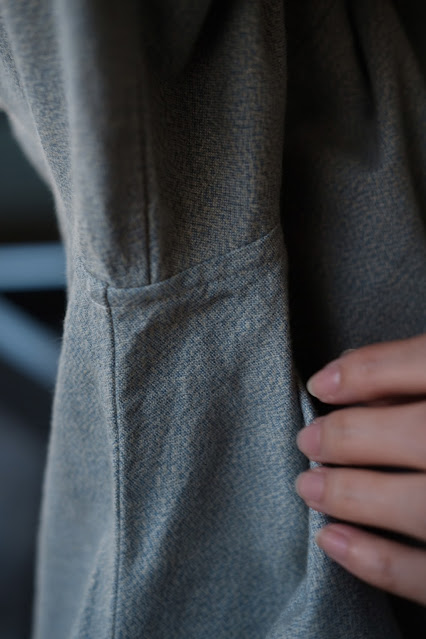 両肩のダーツ。肩周りに自然な膨らみが生まれることでつっぱらず、動きやすい作りです。