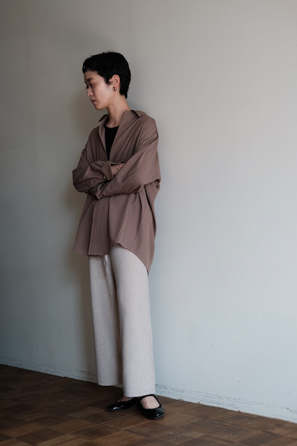 ベビーカシミヤの上質な風合いと程よく肩の力が抜けたデザインがマッチしていて、展示会で思わず一目惚れしてしまったモデルです。